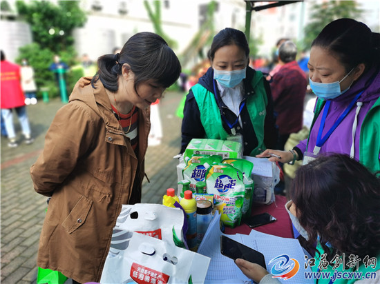 在活动现场还与观众互动,一起参与游戏“我是垃圾分类能手”,市民将抽到的垃圾分类小纸条投放到相应的垃圾桶里。互动活动结束后,党员志愿者登门入户向居民派发宣传单,讲解如何进行垃圾分类,分类后如何处理、怎样变废为宝等相关问题。