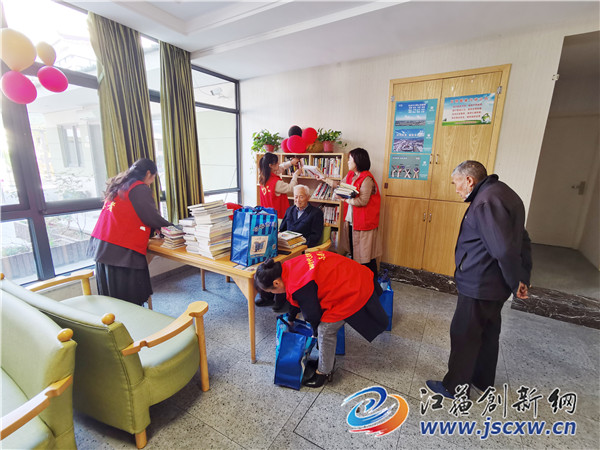 江苏创新网讯 扶老养老传家久,尊老敬老世泽长。在重阳节来临之际,为了大力弘扬中华民族“尊老、敬老、爱老、助老”的优良传统,10月23日上午,句容市图书馆党员志愿者精心挑选了100本文化、养生、保健、休闲等适合老年人阅读的图书送到幸福里康护之家,受到老人们的热烈欢迎。