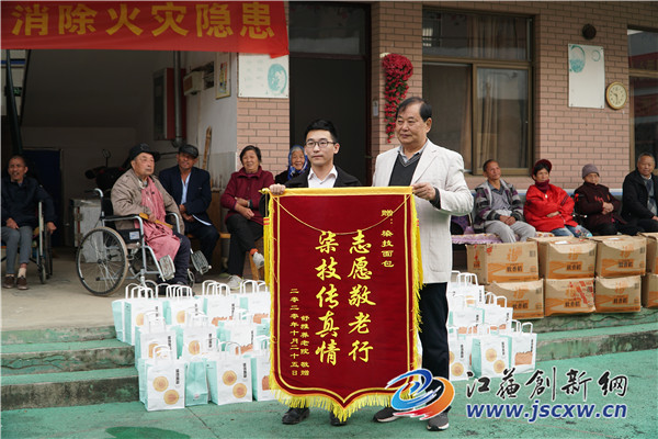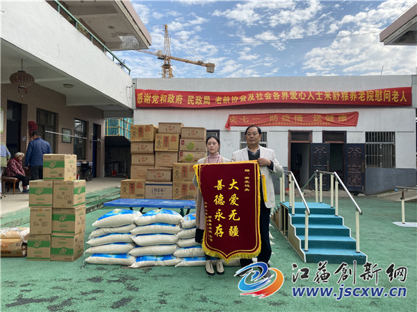 爱心企业名爵汽车修理厂、上海亚一金店、南北码头、柒技面包为老人们送去了爱心面包、牛奶、大米等,舒雅养老院院长王成龙介绍了养老院的基本情况,并向爱心企业回赠锦旗,感谢他们的爱心善举,让老人感受到浓浓的亲情和社会的温暖。