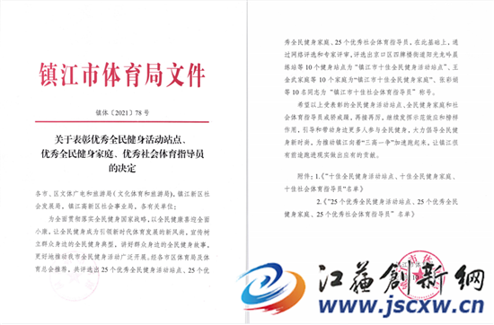 江苏创新网讯 近日,在镇江市召开了2017-2020年度镇江市群众体育先进表彰大会。句容市文体广电和旅游局、句容市城市管理局、王海明、金秀兰、句容市君子兰广场舞俱乐部、张新民家庭、费永学等单位、组织和个人受到表彰。