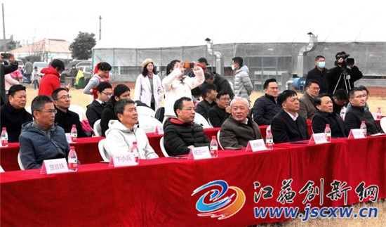 出席开工仪式的领导有:原江苏省委副秘书长胥爱贵、原江苏省农委主任吴沛良、江苏省农业宣传教育与文化体育中心主任周振兴、南京市农业农村局副局长马洁峰、栖霞区人民政府副区长杨栋;栖霞区农业局副局长卞小兵、八卦洲街道办事处主任俞朝晖、栖霞区现代产业园管委会事务副主任曹夕阳;江苏省休闲旅游农业协会会长王冬宝,南京市农学会会长杨五一等。