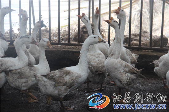 在养殖区,记者看见,山羊在稻草堆上取暖,圈内的鸡鸭鹅或翘首或振翅,十分活泼。还有一群白鹅正成群结队地泛波湖上,在水中引吭高歌,一会儿又在岸边大摇大摆地散步,颇有诗情画意,富有生态自然之美,更是名副其实的生态养殖。