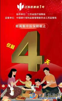 江苏创新网讯 昨日,笔者从有关部门获悉“截至2月20日,全省已有超260万人投保“江苏医惠保1号”,共计赔付案件985例,赔付总额565.82万元。本月底集中投保期结束后,3月1日起,投保“江苏医惠保1号”将有90天等待期。” 现距“江苏医惠保1号”参保倒计时仅有4天了,想投保的需抓紧。