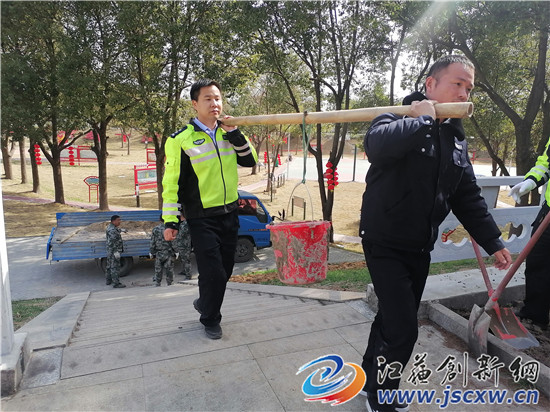 丹徒交警前来学雷锋的带队人时警官告诉记者,他每年的学雷锋日都积极参与学雷锋活动,有时单位组织,有时以个人名义学雷锋。他说,自己是一名交警,平时上路执勤,隔三差五自己就能碰到一件类似学雷锋的事,大到救死扶伤,小到扶盲人孩子过马路,帮未成人孩子寻找到爸爸妈妈。这些事情基本上每个交警身上每年都发生好多次,只是这些事情做了自己和当事人心里开心,绝大多数人不知道而已。今年学雷锋到来之际,时警官了解到丹徒区兴乐市政公司木林志愿者服务队正在宝堰烈士陵园换碑、整地、除草等,时警官主动与兴乐市政木林志愿者服务队带队人陈正乐先生联系。5日上午,3名交警来到宝堰烈士陵园,几名交警立即上阵,抬石子,搅拌水泥混凝土,平整地面、除杂草等等,忙得不亦乐乎,同时也忙得满头大汗。他们说,烈士陵园整好了,打扫干净了,大家清明节来扫墓也就方便了,想到这里他们再苦再累心里也是甜的,心甘情愿的。(图文/李国平 李岚)
