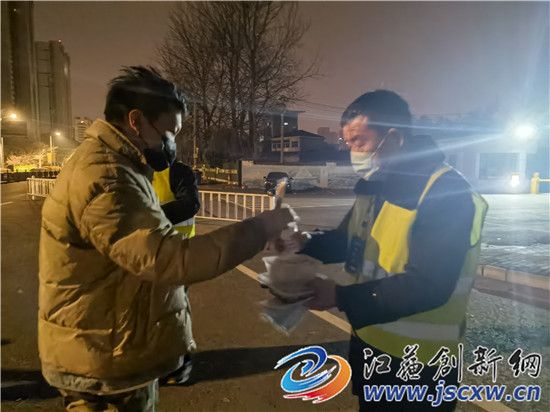 3月20日凌晨零点时分,记者跟随句容市镇村公交有限公司杨江副总经理来到句容市东郊环线弘景路路口卡点。“我们在这里已经是第六天了,每天16组安排3个人值班守候着,一站就是12个小时,来回倒换,我们不说苦,因为我们也是句容的一份子啊,疫情中应该为自己的城市贡献一份力量,全市能平安度过疫情,早日恢复正常,我们心里就暖暖的,很有干劲!