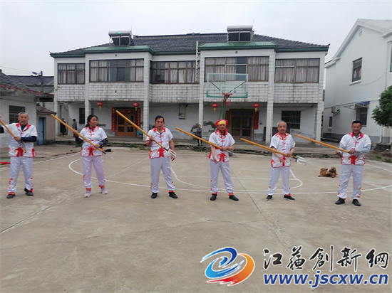 江苏创新网讯 “五一”小长假期间,每天傍晚时分,在镇江丹徒区宝堰镇坞村,一种翻转抛接兵器、观赏性极强的民俗舞蹈——“镗舞”表演,让围观的村民们大开眼界。原来,疫情防控期间,经过多名老年村民的潜心挖掘,曾与村里入选江苏省非物质文化遗产名录的“双推车”齐名,濒临失传的“镗舞”实现起死回生。