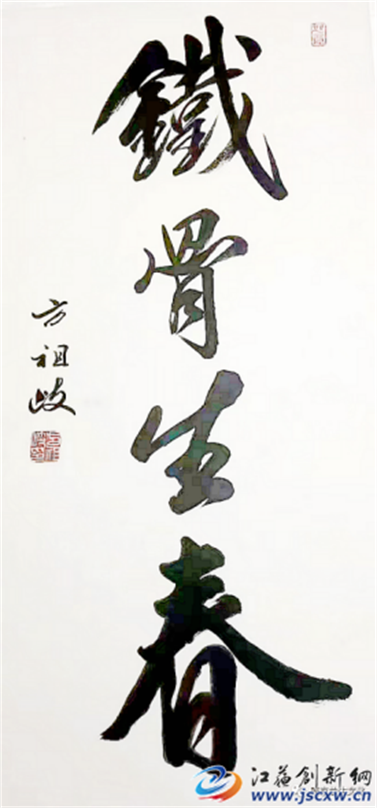 (原南京军区政委方祖岐上将为展览题词“铁骨生春”)