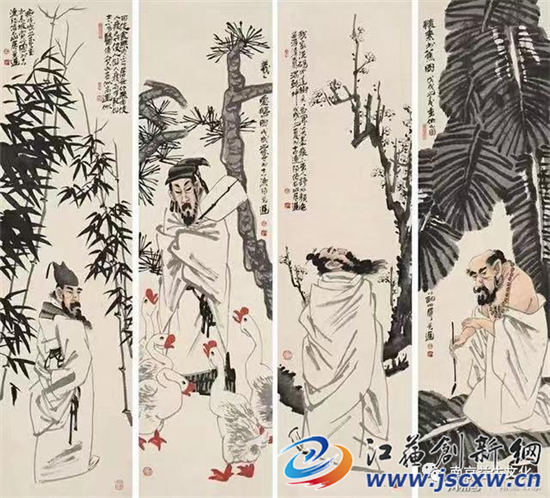 正如言恭达教授所赞誉:三位先生也都表现出了极为谦虚好学的品格。陈冬至表示,南京是六朝古都、历史名城,有七千年历史,500年的都城,是天下文枢之地,来此地参加展览非常荣幸,也非常高兴有两地艺术交流的机会,希望大家提出批评。彭连熙则表示:“我们三人,都想学习松竹梅的品格,松树经风雪而不倒,梅花凌寒怒放,竹子表现我们的虚心,虽然我们都已年近古稀,但仍然到这里向大家求教”。张永荣说,这个展览已经筹备三、四年,这也是两大文化重镇互相交流互相学习的难得的机会,“天津人才济济,陈冬至老师桃李满天下,何家英老师、霍春阳老师、王书平主席、贾广健院长等等都是他的学生,他的画有时代的印迹;彭连熙老师的小人书无人不知,看过《红楼梦》《西厢记》《牡丹亭》的,都知道他。我在他们俩面前是小弟弟,能跟两位大师同台献艺,感到非常荣幸”。
