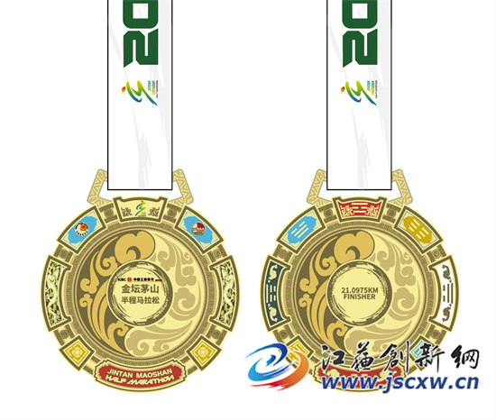 “茅马”是中国田协金牌赛事,已成功举办四届。发布会上展示的奖牌外形形似罗盘,正面以龙图腾与祥云图案寓意茅山山青水灵的秀美自然风光;背面融入金木水火土五行配色,呈现金坛茅山创新景区“红色游”、 夯实生态“绿色游”、 拓展航空“蓝色游”、 提升道文化“紫色游”、 开发灯光“月色游”五大特色。参赛服装和参赛包的设计上以国风绿色为底,祥云环山抱绿,让广大跑者在最美人间四月天感受金坛茅山独特风采。