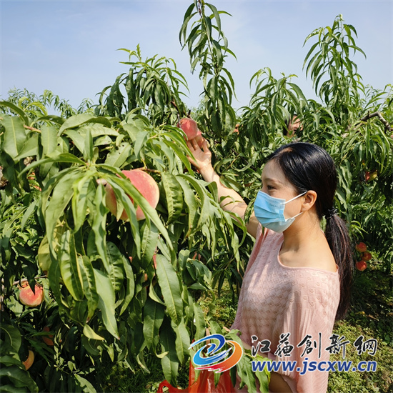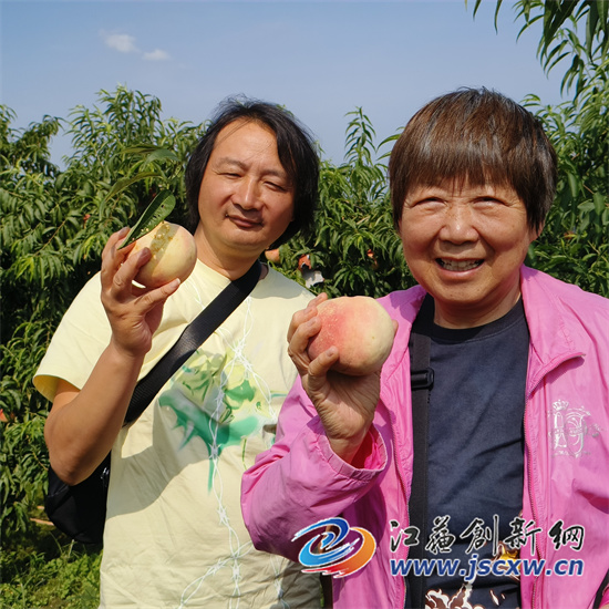 江苏创新网讯(图文/毕庆元 魏荣霞)国庆黄金周10月1日开始,位于镇江丹徒荣炳秋红金月农业公司秋红1号脆桃基地,进入采摘高峰期。尽管黄金周前三天,零零星星下着小雨,但却挡不住本地市民及周边镇江、金坛、句容和丹阳等地一批又一批老顾客的热情,纷纷携亲朋好友,自驾前桃园采摘尝鲜。4日,天气开始放晴。桃园内更是游客如织,车水马龙,掀起采摘高潮。