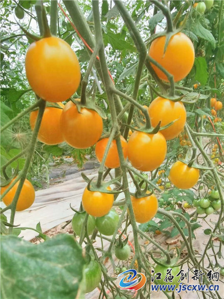 丰收时节,瓜果飘香。进入6月份以来,随着天气温度渐渐升高,古隍村村民樊忠种植的“彩色圣女果”(也叫彩色小蕃茄)的水果喜获丰收。6月3日下午,在古隍村村民樊忠的种植基地,一串串黄色、红色、橙色、绿色的圣女果挂满枝头,樊忠正小心翼翼地将熟透的圣女果采摘下来放入竹筐中。樊忠告诉记者,以前古隍村种植品种单一,除了小麦就是水稻,旱种植物不是黄豆就是山芋,后来村里大力发展致富项目,鼓励村民大胆引进科技含量高的新型水果产品,樊忠在朋友的帮助下利用3亩山地进行彩色圣女果试种,没想到该彩色圣女果一上市就受到消费者的青睐,先期成熟的3亩多彩色圣女果全部销售一空,甚至供不应求,彩色圣女果有红色、黄色、青色多种颜色,有大小10多个品种,不仅能当蔬菜,也可以烹饪多种菜肴,也能洗净直接食用当水果吃,目前彩色圣女果亩产可达5000到6000斤,在种植彩色圣女果的同时,樊忠还种植了香瓜、西瓜、草莓等,还能搭上“白兔草莓”名声的顺风车。