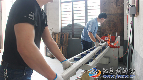 走近鹏宏金属科技公司,厂区厂外一片忙碌景象。生产车间里机声隆隆,机器开足马力加紧生产;包装车间,工人们在紧张地扎带,装箱;厂区外,工人们正向集装货箱装货发货。令人惊奇的是,走进车间就有阵阵凉风扑面而来,丝毫无闷热之感。当记者感到好奇时,旁边的工人用手一指说:“防暑降温,靠的就是咱们头顶的工业大风扇!”