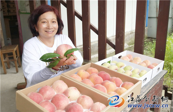 江苏创新网讯 7月1日下午,记者在句容市大卓果果桃园采访时看到,女主人王玉琴和丈夫骆杏春正忙的不亦乐乎,摘桃、选桃、把刚摘下的鲜桃打包装箱搬运至前来买桃的小车上......王玉琴带着疲惫但却欣喜地说道:“眼下正是销量正旺的时候,桃子好吃,但要一个一个从树上摘下来。我们凌晨4点钟就进了桃园,当时天还没有亮透,只能隐隐约约看见树上挂着的桃子的大小。但我们虽然辛苦,但心是甜的。你看,今天刚刚卖出去的鲜桃就有两百多箱。”