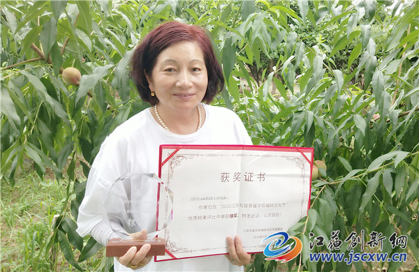 果果桃园地处句容市大卓万亩桃园内。骆杏春和王玉琴夫妇种植桃园已经有13-14年历史了。提及种桃,今年64岁的骆杏春一脸的自豪。他说:“今年6月25日,在2020江苏句容首届华阳福桃文化节优质桃果评比大赛上,果果桃园的沙红桃荣获银奖”。我们看到,获奖的沙红桃色泽鲜艳,红彤彤的,硬度也比较好,闻起来,有股本色清香味,让很多人想起小时候家乡的味道。尝一口,口感脆甜。这种沙红桃个头特别大,单果基本上都在半斤左右,最大的甚至能长到一斤二两,小的也有半斤左右,很漂亮。更重要的是便于储存和运输。早几年,果果桃园在句容市农业农村局的指导下,从南京、苏州等地引进的日川白凤新品种这种新品桃的个头虽然不大,但比一般品种的鲜桃更甜,所以,日川白凤品种鲜桃很受欢迎,很畅销。