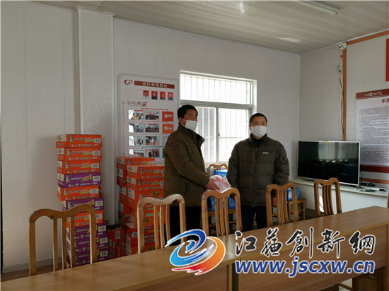 江苏创新网讯 2月9日上午,句容市城管局副局长、郭庄镇孔塘村第一书记徐正春、局机关党支部书记陈海涛看望了坚守防控疫情一线的孔塘村工作人员,为他们送去了口罩、方便面、牛奶等防控物资,并代表城管局党委向所有奋战在疫情防控一线的广大村民送去关心和问候。