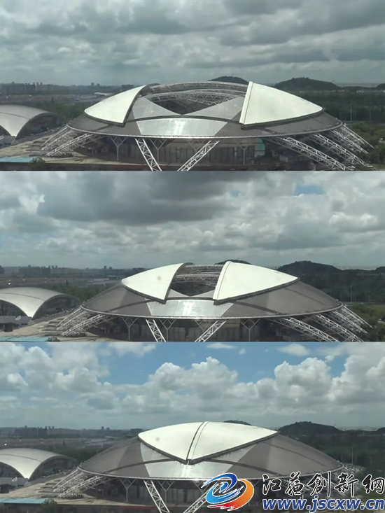 南通体育会展中心,紧随南京奥体之后落成于2006年,虽然座位只有3万,但它是国内第一个采用巨型活动开启式屋盖的体育场,非常具有前瞻性。体育场活动屋盖的拱架最大跨度达到280米,最高点有50米,形态非常宏伟。展示了"鲲鹏展翅、日月同辉"的设计理念。