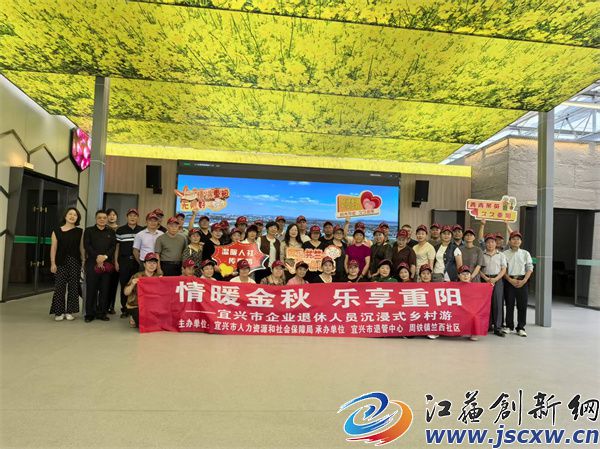 江苏创新网讯 在重阳佳节即将来临之际,为弘扬中华民族尊老、敬老、爱老的传统美德,充分体现对广大企业退休人员的关怀与尊重,丰富其精神文化生活,搭建老友重逢、共叙情谊、乐享晚年的互动平台,16日,由宜兴市人力资源和社会保障局主办,宜兴市企业退休人员社会化管理服务中心与周铁镇竺西社区共同承办的“情暖金秋,乐享重阳”活动欢乐开启。此次活动旨在通过带领退休人员走进乡村,实地感受周铁现代生态农业的蓬勃发展与乡村振兴的壮美画卷,体验一场舒适、怀旧、充满田园乐趣的秋日之旅,共享经济社会高质量发展的丰硕成果。