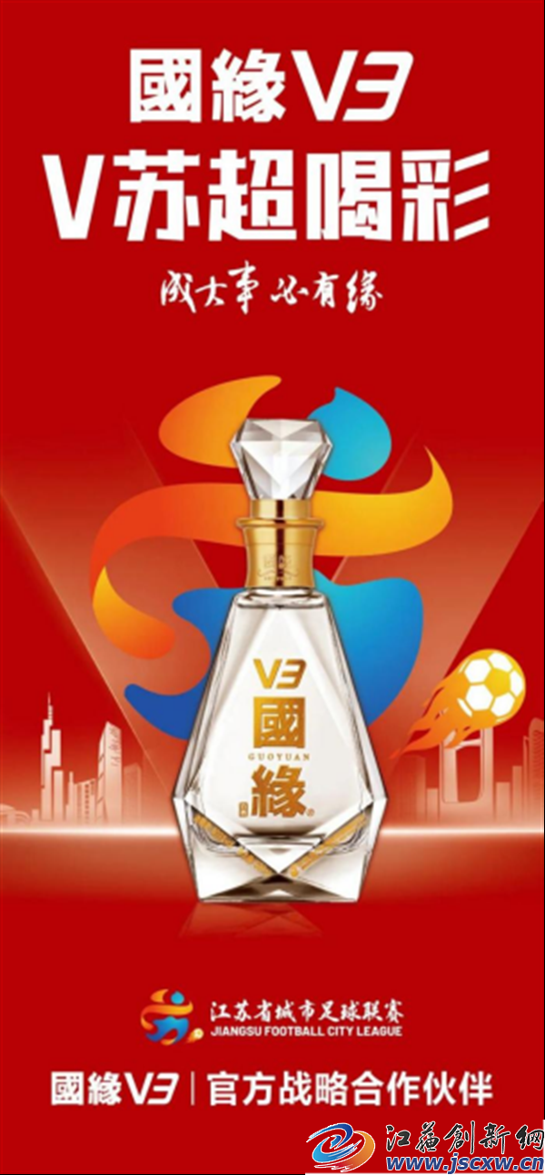 国缘V3作为苏超的唯一官方战略合作伙伴,珠联璧合。国缘V3成以匠心致敬荣耀,为城市荣耀干杯。V胜利喝彩, V拼搏加油,V友谊干杯。以多种方式助推“苏超”,营造百万观众沸腾的比赛赛场,燃火百场球迷狂欢的“第二现场”,助推10亿网友燃爆“苏超”。