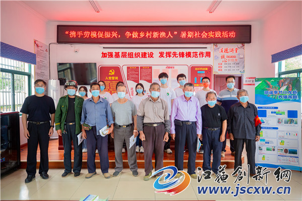 实践活动期间,团队成员分别走近江苏省劳模曲秀鹏,镇江市劳模洪玉定、吴其法、胡天娣(女),句容市五一劳动奖章获得者吴琼(女),句容市十佳农民侯广花(女)等水产行业的榜样,倾听他(她)们的奋斗故事,学习他(她)们的先进事迹,秉承他(她)们开拓创新、敬业爱岗、无私奉献的精神,坚定理想信念,争做乡村振兴的新渔人。