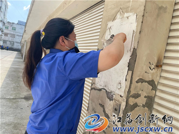 句容市玉清小区属于开放式老旧小区,基础设施落后老化,城市管理问题多发,复发。针对这一情况,数管中心副主任倪尧通过事前摸排调查,形成一份问题清单。活动当天,队员们携带配发的自行处置包,将“问题清单”变为“行动清单”。