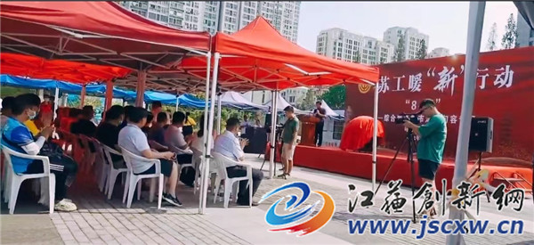 8月3日上午,顶着烈日,句容市总工会在市民广场举办苏工暖“新”行动——“8+X”综合服务集市活动启动仪式,并同步启动句容市司法局社会普法组织以“送清凉、送温馨、送法律”为主题的八月安康“三送”活动。