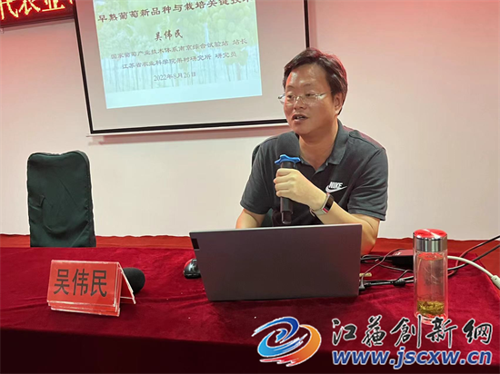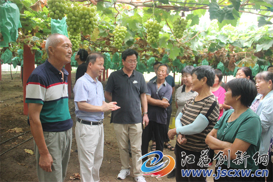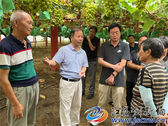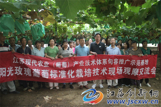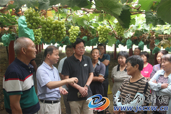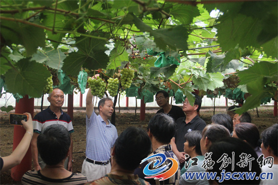 江苏创新网讯 8月27日,江苏省现代农业(葡萄)产业技术体系句容推广示范基地,在基地示范点--句容市茅山镇长城村启禄家庭农场举行“阳光玫瑰葡萄标准化栽培技术”现场观摩交流会,面对面教农户如何种植出高品质“阳光玫瑰”葡萄。50余名葡萄种植大户闻讯赶来参加现场观摩培训。
