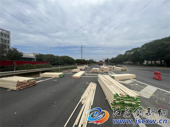 江苏创新网讯 9月21日,一辆满载建材木方的货车途径句容市122省道和文昌东路路口处时,因转弯过急,车辆侧翻车上满载的建材木方全部散落在地,句容市城管局环卫处的工作人员忙活3个多小时,恢复了正常交通。