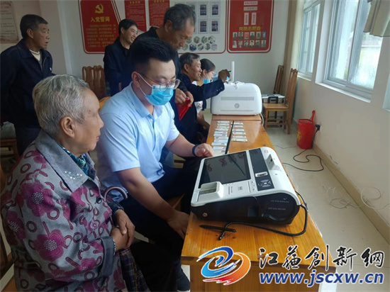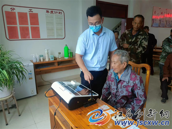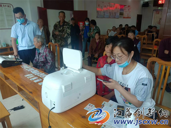 江苏创新网讯 为践行“我为群众办实事”活动。近日,后白镇槐道村委会联合二圣农村商业银行,在村会议室为村民集中办理更换第三代社保卡,把服务送到村民“家门口”。