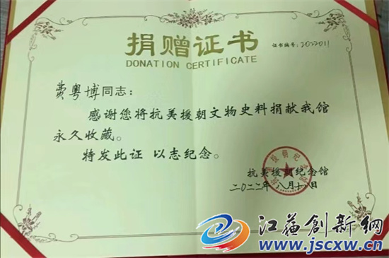 10月12日得知家乡镇江宝堰将组织党员干部和学生观看相关专题片,开展向抗美援朝英雄费晓成及刘俊清烈士学习活动,费粤博表示,待疫情结束后,将回到老家宝堰,一起讲好先辈们的红色故事,让红色基因能够代代相传。(图文/李国平)
