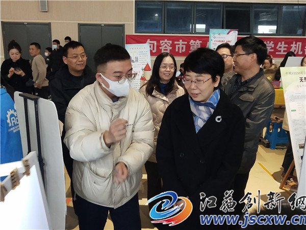 8日上午,大赛吸引了全市近600名师生共同参与。本次竞赛共计7个项目展开角逐。覆盖幼儿,小学,初中三个学段,几乎全部中小学都参与了本次竞赛,有50件创新作品和30件STEM优质案例在现场展示交流。其中3D打印,无人机和ENJOY AI都是新增的竞赛项目。句容市委常委王红芳,句容市科协主席高庆松,市科协副主席张德成,市教育局副局长房家义 ,崇明小学校长曹慧等一行人专程来到现场观摩,一起为选手们加油鼓劲。