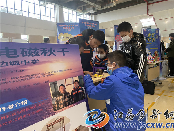 “电磁秋千”、“ 自动感应手部消毒器”、“趣玩风车”“无人机”……等各种充满创意的小发明让人眼花缭乱。一个个精致有创意的作品赋予科技的力量。