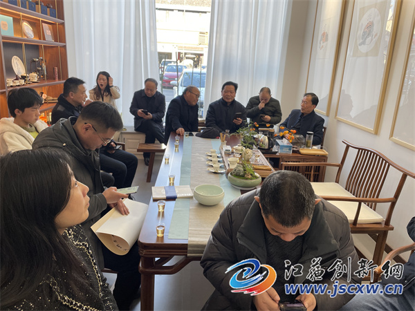 江苏创新网讯 早春二月,春意盎然,茶香四溢,欢声滿堂。2月25日下午3时,来自淮安、沭阳、泗阳三地的作家、文艺评论家、企业家,书画爱好者相聚在泗阳县雅集叙,共赴一场与春天的约会,品茶欣赏毕传国的文人画作品。