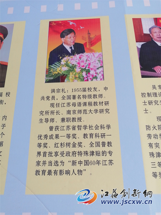 图五、六、宝堰中学走廊上名人宣传栏上的洪宗礼。