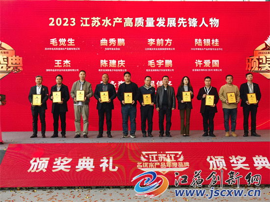 峰会现场,对“江苏红”名优水产品年度品牌评选活动获评的“优质区域公用品牌”和“优秀企业产品品牌”颁奖授牌;对 2022 年度推动江苏水产养殖高质量发展的优质种苗、饲料、渔药、渔机设备以及水产养殖企业等进行“2023 第二届江苏水产高质量发展先锋企业”表彰颁奖,对做出卓越贡献的从业者进行“2023 第二届江苏水产高质量发展先锋人物”表彰颁奖。