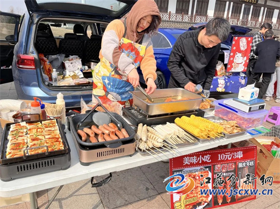 庙会现场,游人如织。除了欣赏精彩的舞狮表演,游客可以逛特色集市,带孩子坐小火车、玩蹦床、吃美食,观赏杂技表演和汉服秀,感受传统庙会特有的浓浓烟火气。景区还将非遗文化融入到庙会中,游客可以体验非遗拓片,手工制作团扇、香囊,欣赏汉服巡游等,感受非遗文化的的魅力。