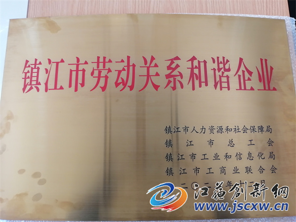 3月15日上午,镇江市人力资源和社会保障局、镇江市总工会、镇江市工业和信息化局、镇江市工商业联合会,联合授予宝堰镇康林电器有限公司“劳动关系和谐企业”光荣称号,并向该企授予了铜牌。