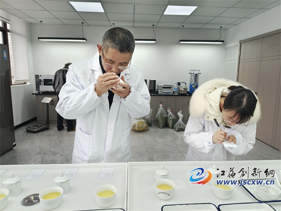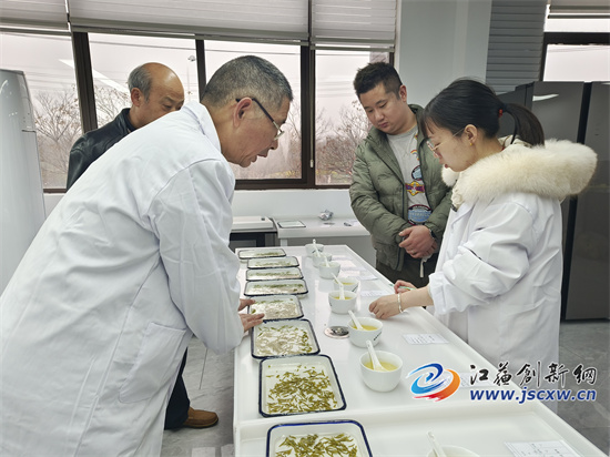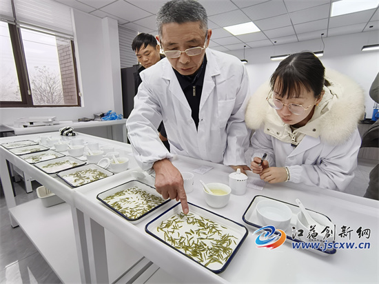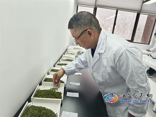 江苏创新网讯(图文/毕庆元 王珊珊)“3号样品很不错,你们看,颜色很绿、大小几乎一致、也极少有碎片。可惜冲泡后味道不对,是高火的原因。记录下来,下次一定要注意。”3月22日上午,在句容市茶叶协会的审评室内,江苏农林职业技术学院陈学林教授等审评专家正在为送审的茅山长青茶进行审评。