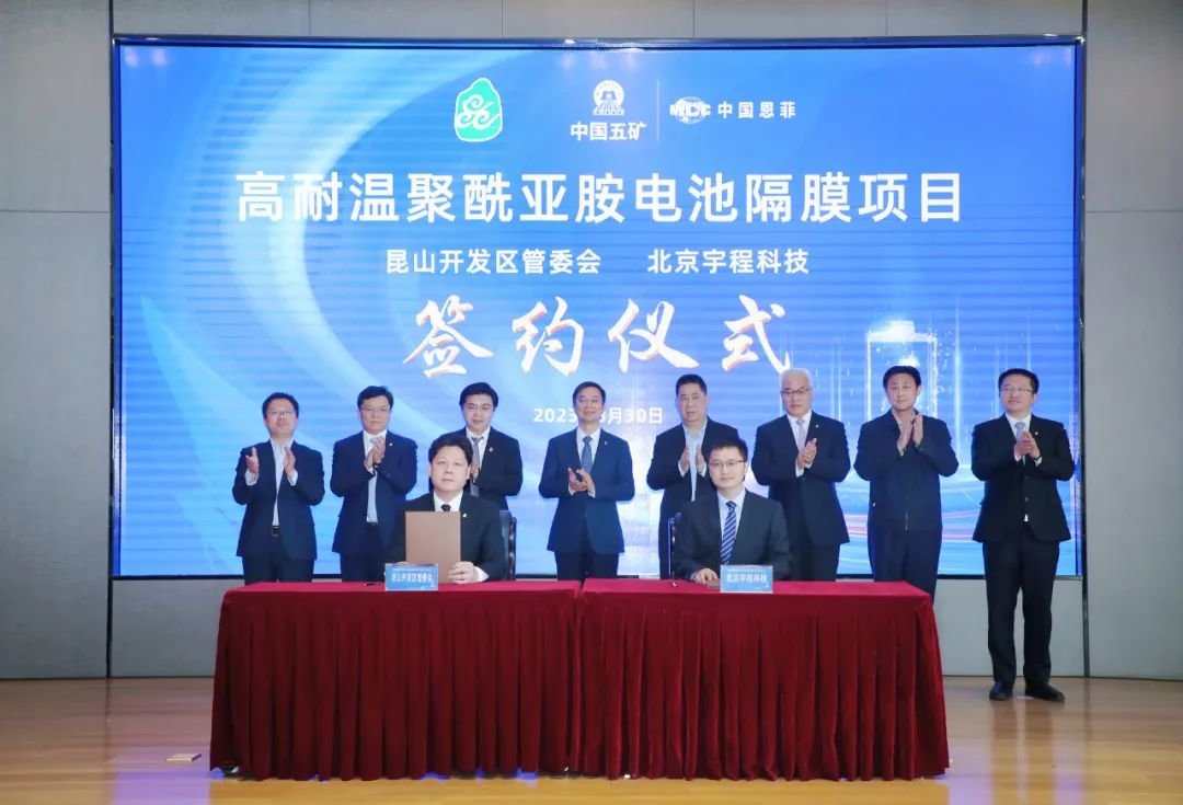 江苏创新网讯 3月30日,昆山开发区与北京宇程科技有限公司在北京签约,总投资50亿元的高耐温聚酰亚胺电池隔膜项目落户昆山,将填补我国在聚酰亚胺领域高端产品和自主技术的空白。该项目规划建设百亿平方米高耐温聚酰亚胺隔膜产能,实现约20%市场占有率,计划成为千亿市值的高性能隔膜龙头企业,为昆山高质量发展注入源头活水和强劲动能。中国恩菲工程技术有限公司总经理魏甲明,国家电投集团首席协调官鞠贵文,五矿金通股权投资基金管理有限公司总经理王学飞,北京化工大学教授、北京宇程科技有限公司董事长齐胜利;昆山市委书记周伟,市领导徐敏中、钱许东、秦微晰出席活动。