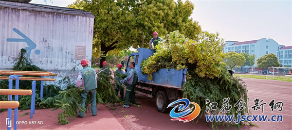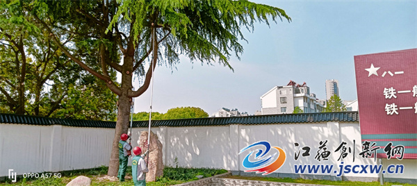 江苏创新网讯 为进一步提高营区绿化水平,做好双拥共建工作。近日,句容市城管局园林管理中心深入市武警部队开展营区树木修剪工作,美化营区环境。