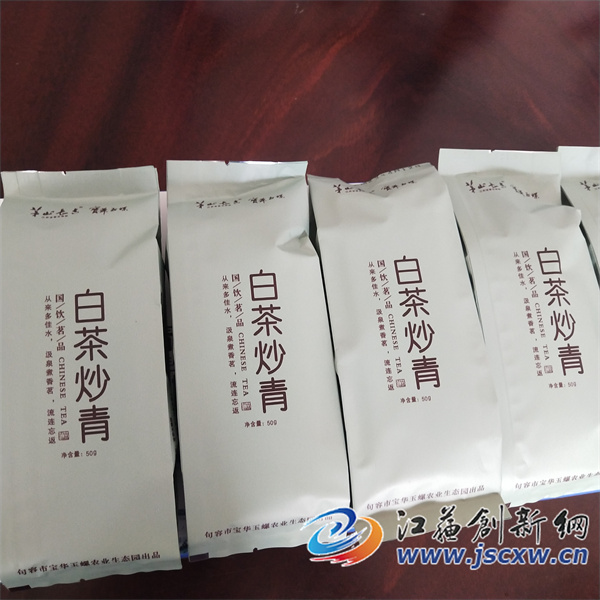 句容市宝华玉螺农业生态园制作的“宝华玉螺”牌白茶炒青,属低温敏感型白色系白化茶,由产自海拔378m同属宝华山宁镇山脉的武岐山鲜叶制作而成。采用高火杀青的传统工艺和现代制作有机融合,能将生长环境特有黄泥土及多年积淀的有机营养质凸显,所以,制成的茶叶形似凤尾,翠绿间黄,白毫显露,犹如金镶碧鞘、内裹银箭。冲泡时,如片片翡翠起舞,颗颗白玉卧底,汤色杏黄,晶莹如玉。饮后,鲜香持久,回甘生津,含有一丝清冷如“淡竹积雪”的奇逸之香。