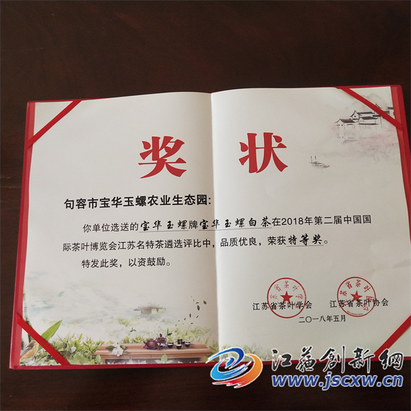 据了解,宝华玉螺牌白茶叶芽在2018年5月江苏省茶叶学会、江苏省茶叶协会举办的“第二届中国国际茶业博览会江苏名特茶评比”中,荣获特等奖;在江苏省第十九届“陆羽杯”名特茶评选中荣获优质奖。2022年,选送的“宝华玉螺”句容白茶,荣获“江苏茅山茶海斗茶邀请赛”金茶汤奖。公司总经理郑立新个人获得镇江市农业农村局、镇江市人力资源和社会保障局组织的“2022年镇江市首届评茶员职业技能大赛暨江苏省首届评茶员职业技能大赛”镇江选拔赛三等奖。