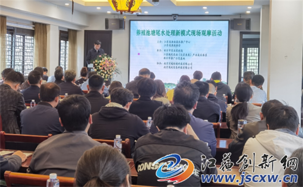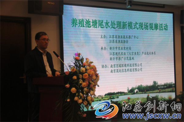 江苏创新网讯 (图文/毕庆元)4月21日,由江苏省渔业技术推广中心、江苏省渔业协会举办的养殖池塘尾水处理新模式现场观摩活动在新沂市窑湾镇举办。来自全省13个设区市水产技术推广机构、部分县区农业农村局分管领导和水产技术推广人员100余人参加了观摩活动。省渔业技术推广中心主任、省渔业协会会长张朝晖,徐州市农业农村局四级调研员刘林广,新沂市农业农村局副局长黄金虎等出席,活动由省渔业协会秘书长邹勇主持。