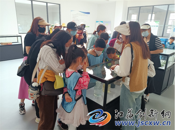 参观完江北二厂,大家继续启程,前往了盘城宣教馆。盘城街道垃圾分类宣教馆详述了街道和社区近年来在垃圾分类方面的工作和成就,馆内有一台垃圾分类智能系统,居民们可以通过该套设备更直观的看到村民参与垃圾分类的动态,而小朋友们则可以通过与各种可回收物做成的精美工展品互动,从而了解更多的环保知识。