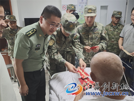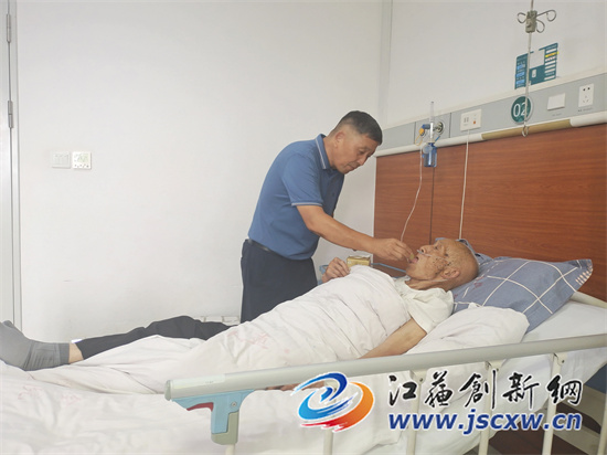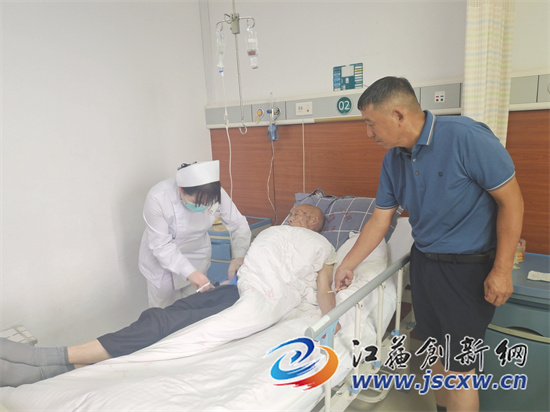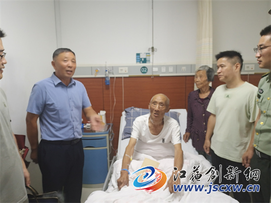 江苏创新网讯(图文/李国平)7月22日,得知镇江市丹徒区上党镇的沈战斗英雄、一等功臣沈国良的父亲玮老人患病住院了,各路的子女们相约来到丹徒新城医院,他们带着慰问金、水果、鲜花看望慰问这位德高望重的老父亲。躺在病床上的沈玮老人说,我太高兴了,失去一个孩子,现在又得到这么多的孩子,今天他们在百忙中又一起来看望我,感觉病也好了许多。