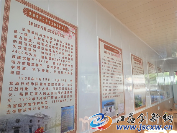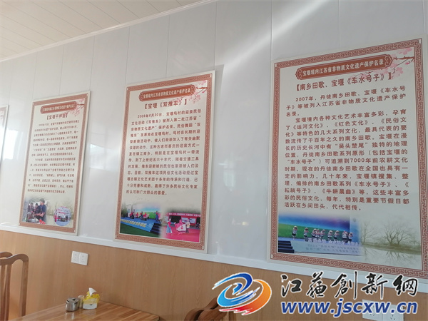 为此,业主李洪庚请来了当地文化界的朋友和文字制版的朋友查找资料,翻阅史书,用了近一周的时间,将千年古镇宝堰所有的省级非遗和市级非遗及省级文保单位和市级文保单位的资料,用图文并茂的方式制成了六块文化版面,贴在新店南面的一面新墙壁上。这六块版面集中介绍了宝堰镇的省级非物质文化遗产保护名录《宝堰双推车》,《南乡田歌. 宝堰车水号子》,市级非遗保护名录《宝堰干拌面》,省级文物保护单位《新四军四县抗敌总会纪念馆》和市级文物保护单位《前隍村新四军第一支队司令部旧址》,市级文物保护单位《清. 咸丰年间的太平桥》。