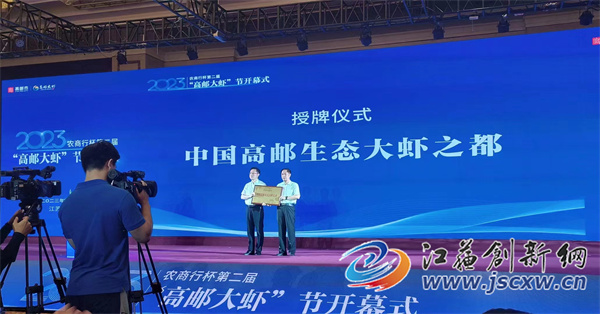 江苏创新网讯 8月18日上午,由中共高邮市委、高邮市人民政府主办的农商行杯第二届“高邮大虾”节开幕式在汇富金陵大饭店隆重开幕。开幕式上,高邮市荣膺中国渔业协会授予的“中国高邮生态大虾之都”称号。