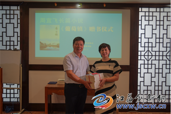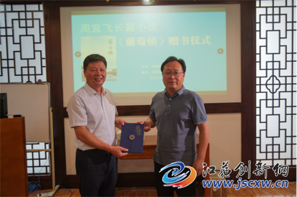 活动现场,周宜飞向句容市图书馆赠送了新书《葡萄镇》,句容市文体广电和旅游局局长张世军向周宜飞颁发了《收藏证书》,并对作者支持图书馆文献资源建设表示感谢。