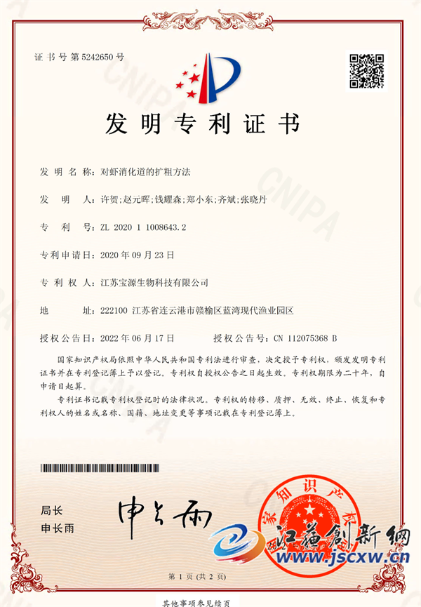 许贺董事长介绍,多年来,公司在南美白对虾仔虾标粗、水质调控、弧菌防治、对虾肠道和肝胰腺调理方面总结出了一套有效的技术体系,开发了一套工厂集约化生态养殖新模式,现已获得国家专利授权11项。2019年以来“宝源来”品牌对虾多次经过国家权威机构检测,结果证明产品无激素、无抗生物、无重金属,被江苏省农业农村厅认定为“无公害农产品”,并被纳入到江苏省水产品质量安全追溯系统的对虾品牌,成为“一条有身份证号的放心虾”。据了解,“宝源来”品牌对虾出场价最高达58元/斤,平均30-35元/斤,产量达20-30斤/m2。