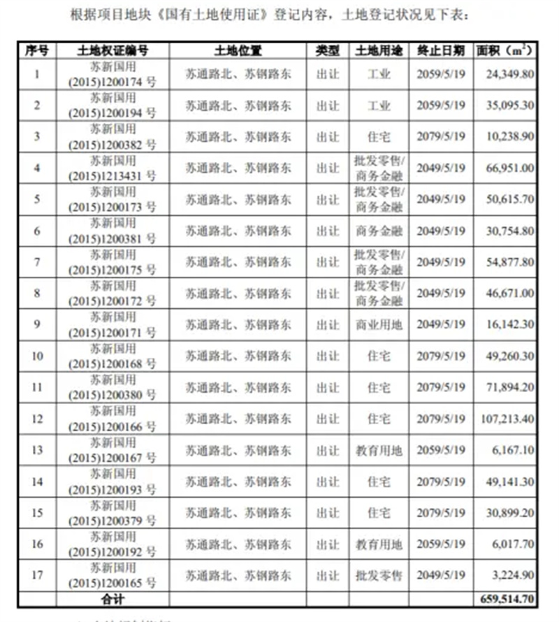 绿岸地产拥有苏地2008-G-6号地块上的17块国有建设用地使用权,其中包括6块住宅用地、两块教育用地、4块商办用地以及社区中心、加油站、办公用地等,当时17块地均为“拟建”状态。