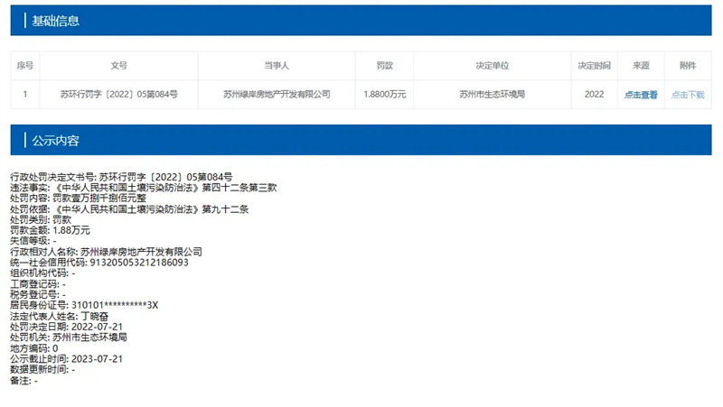 苏州高新区管委会随即要求绿岸地产在2022年6月底前委托第三方机构完成土壤污染状况调查方案指定,并且不得开展任何土壤防治无关的工作。